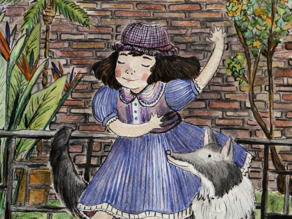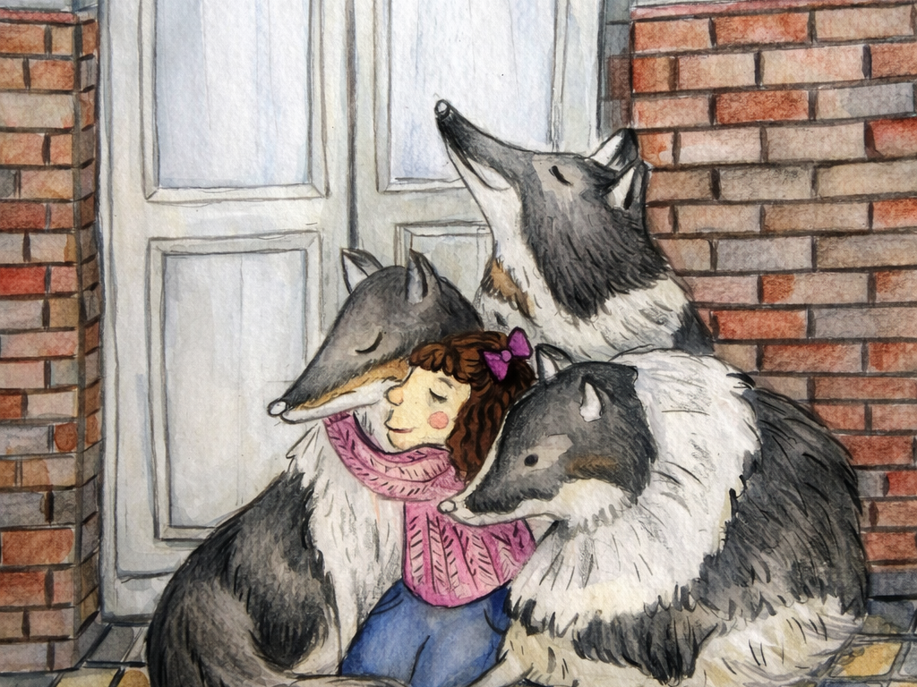 Ilustración niña con perros